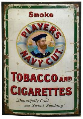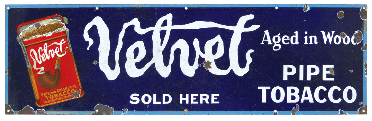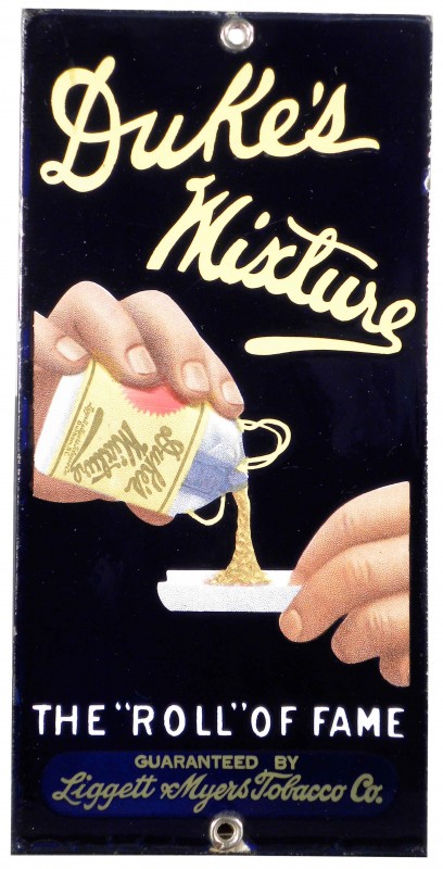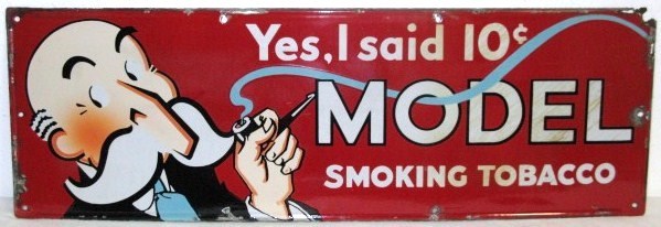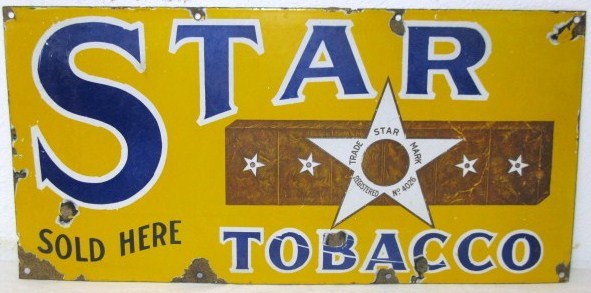During the late 1800s and early 1900s the competition among tobacco brands was extremely fierce. Tobacco manufacturers realized that the best way to advertise was to send signs out to country stores and point of sale locations. Reports indicate that national tobacco brands during this time period sometimes spent over 1 million dollars per year on advertising budgets. Because this was the only advertising that most people would see these porcelain tobacco signs were designed to be colorful, eye-catching, exciting, and memorable and those traits are what make antique porcelain tobacco advertising so collectible today.